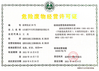 主要回收氧化鋁含量超過50%的石化行業(yè)廢催化劑、吸附劑等危險廢物。具備以下兩個資質(zhì):