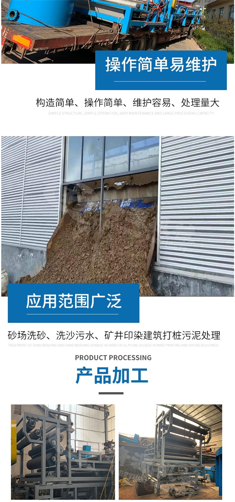 此外,我公司不僅生產(chǎn)帶式壓濾機(jī),還生產(chǎn)板框式壓濾機(jī)、氣浮設(shè)備、固液分離設(shè)備、刮吸泥機(jī)、造紙?jiān)O(shè)備等其他環(huán)保設(shè)備。