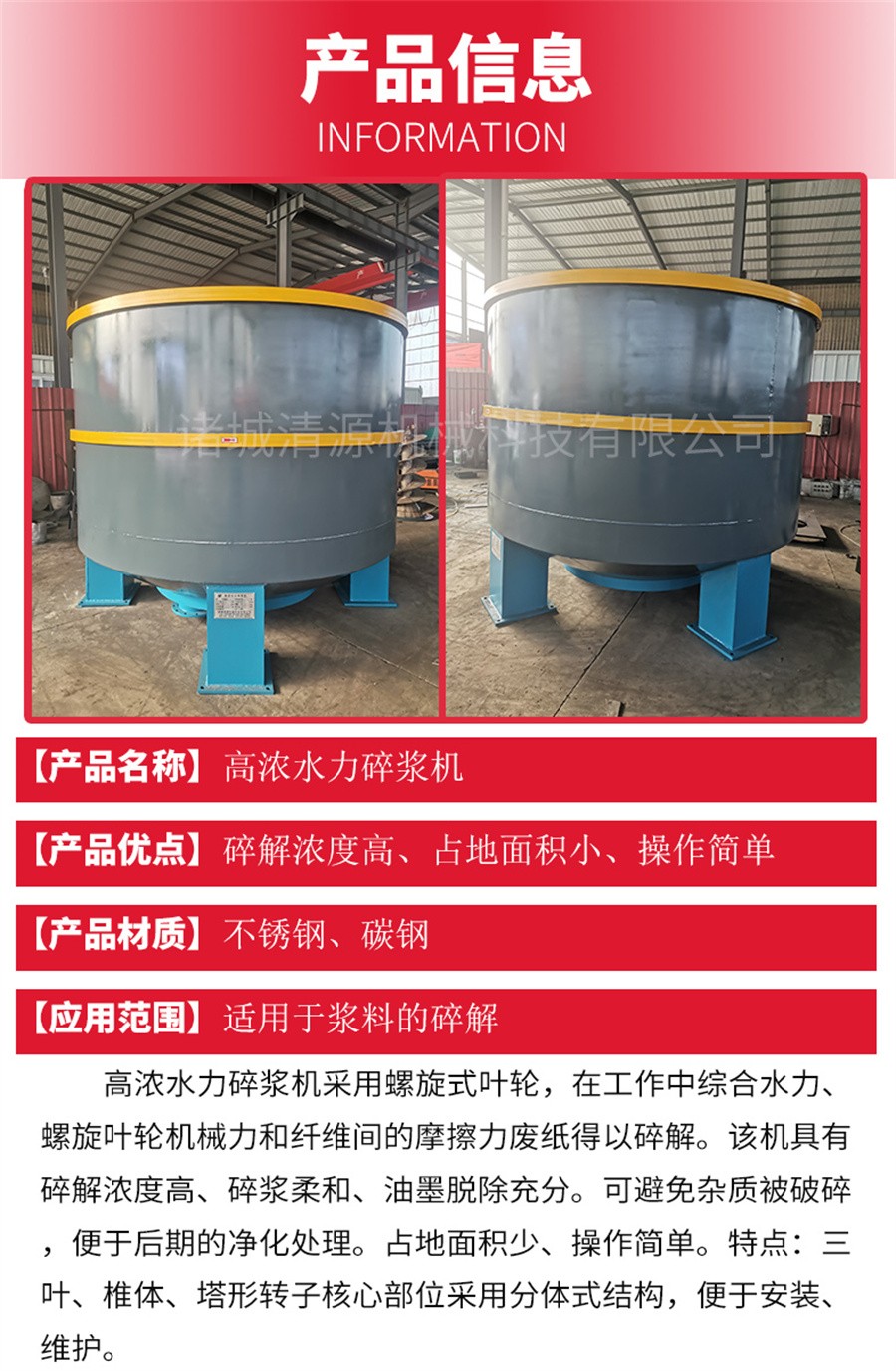 該設(shè)備具有碎解能力強(qiáng),碎漿時(shí)間短、操作維修方便、對(duì)漿料只有離解作用而沒有切斷作用等優(yōu)點(diǎn)。